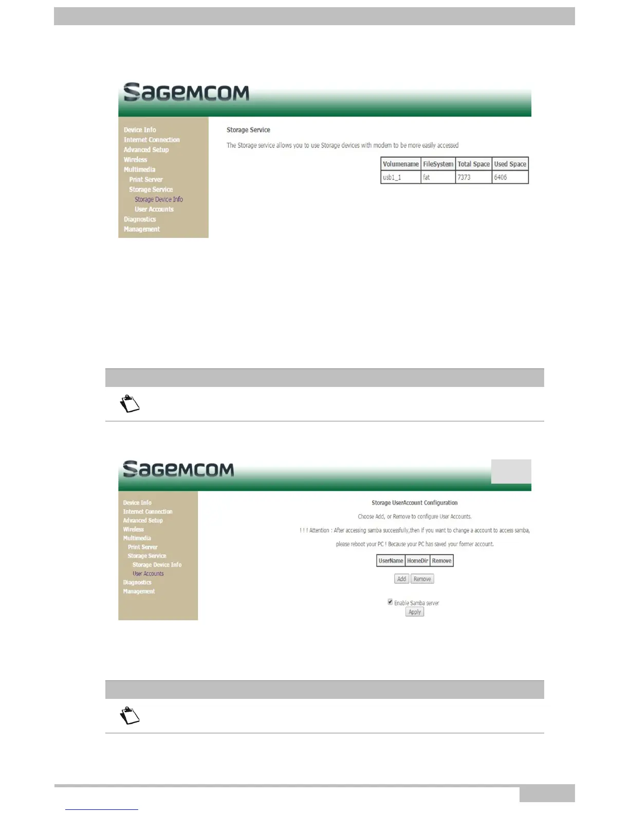 Storage UserAccount Configuration