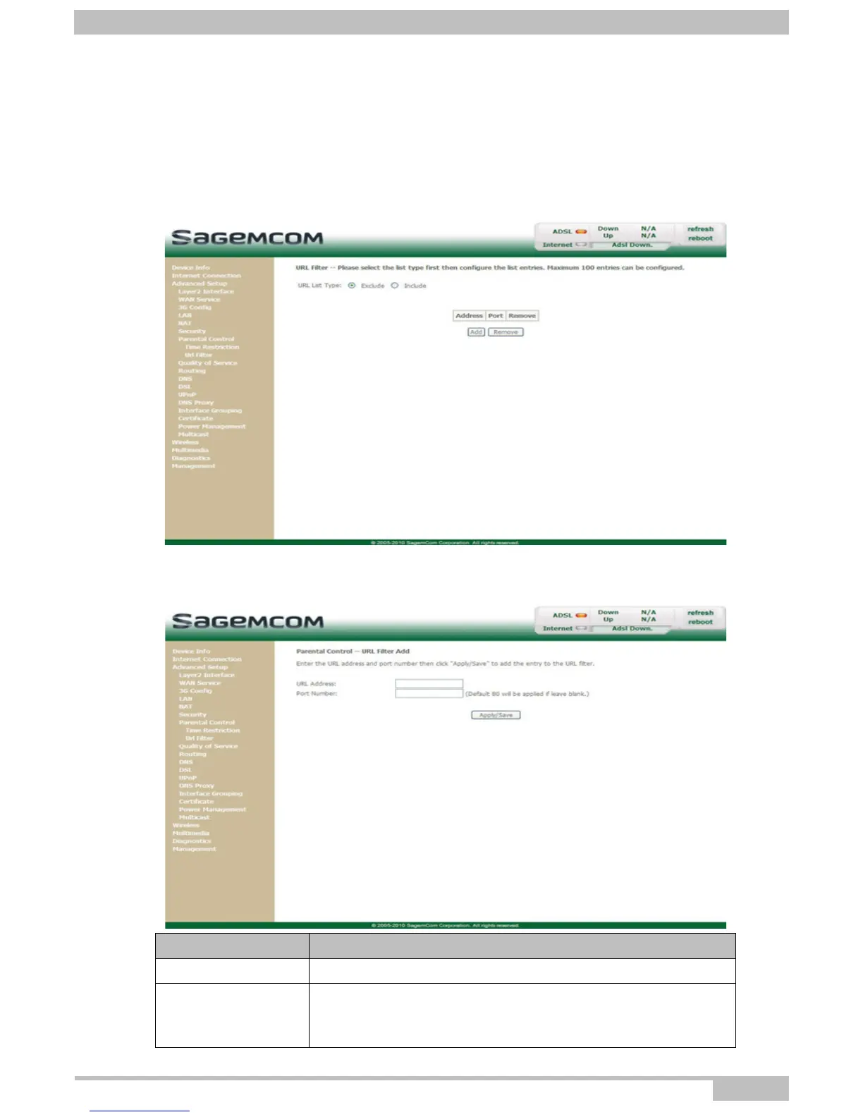 • In the Advanced Setup menu, select Parental Control > Url Filter.