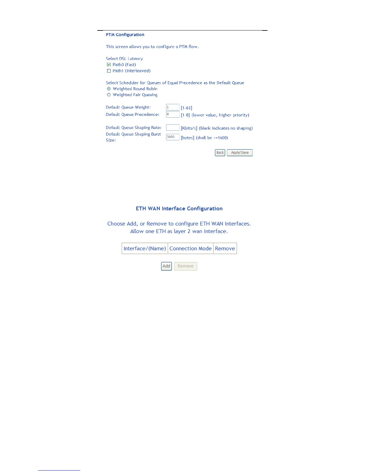 Choose Advanced Setup > Layer2 Interface > ETH Interface, and the following