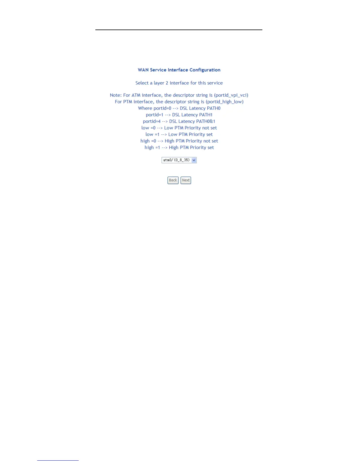 or PTM interface for this WAN service.)