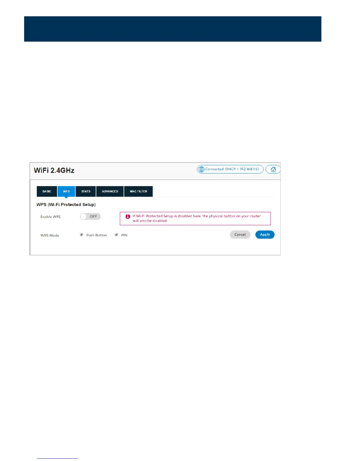 your Wi-Fi network with the push of a button. By default, WPS is disabled. To enable it,