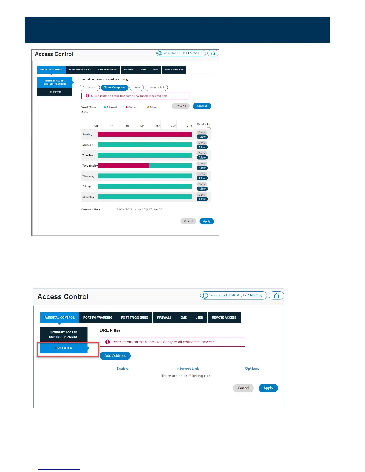 Under Site Blocking, click URL Filter.