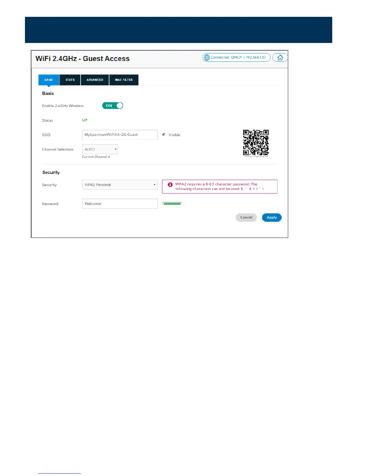 In the SSID field, the guest network name will appear with your network name-Guest.