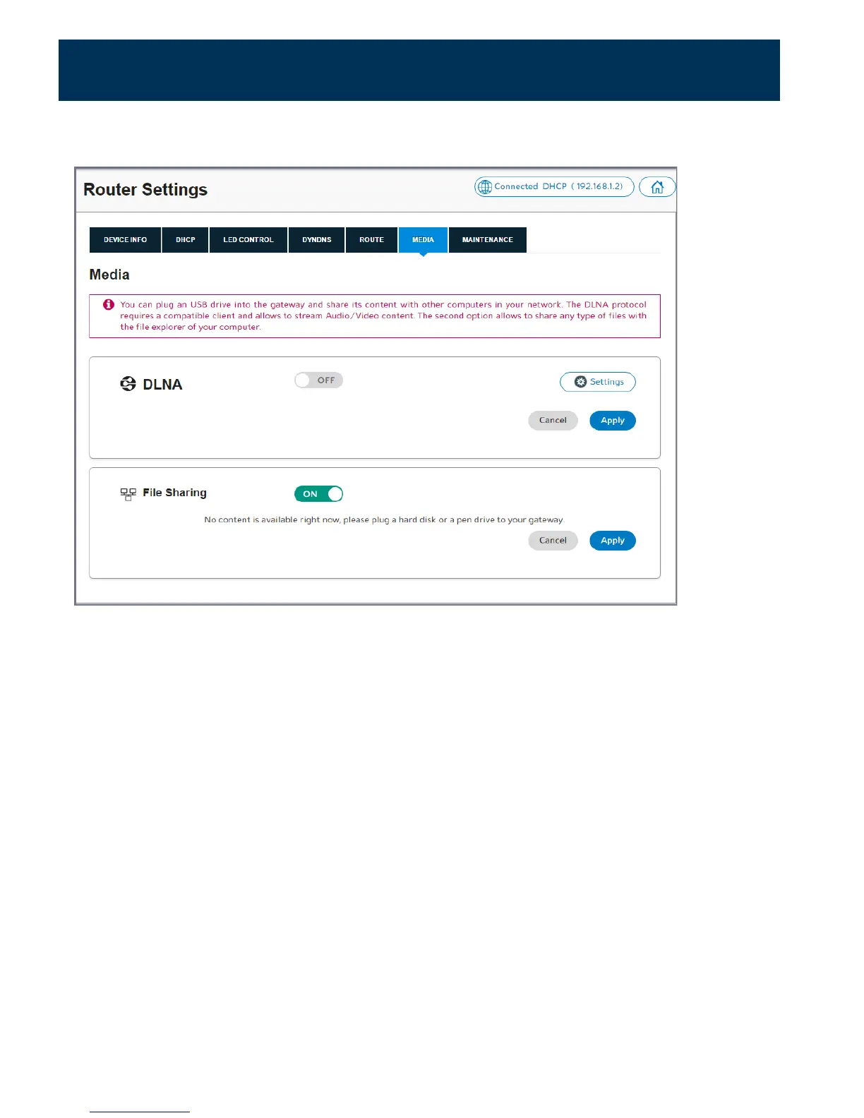 Enabling DLNA (Digital Living Network Alliance) allows you to play media files such as