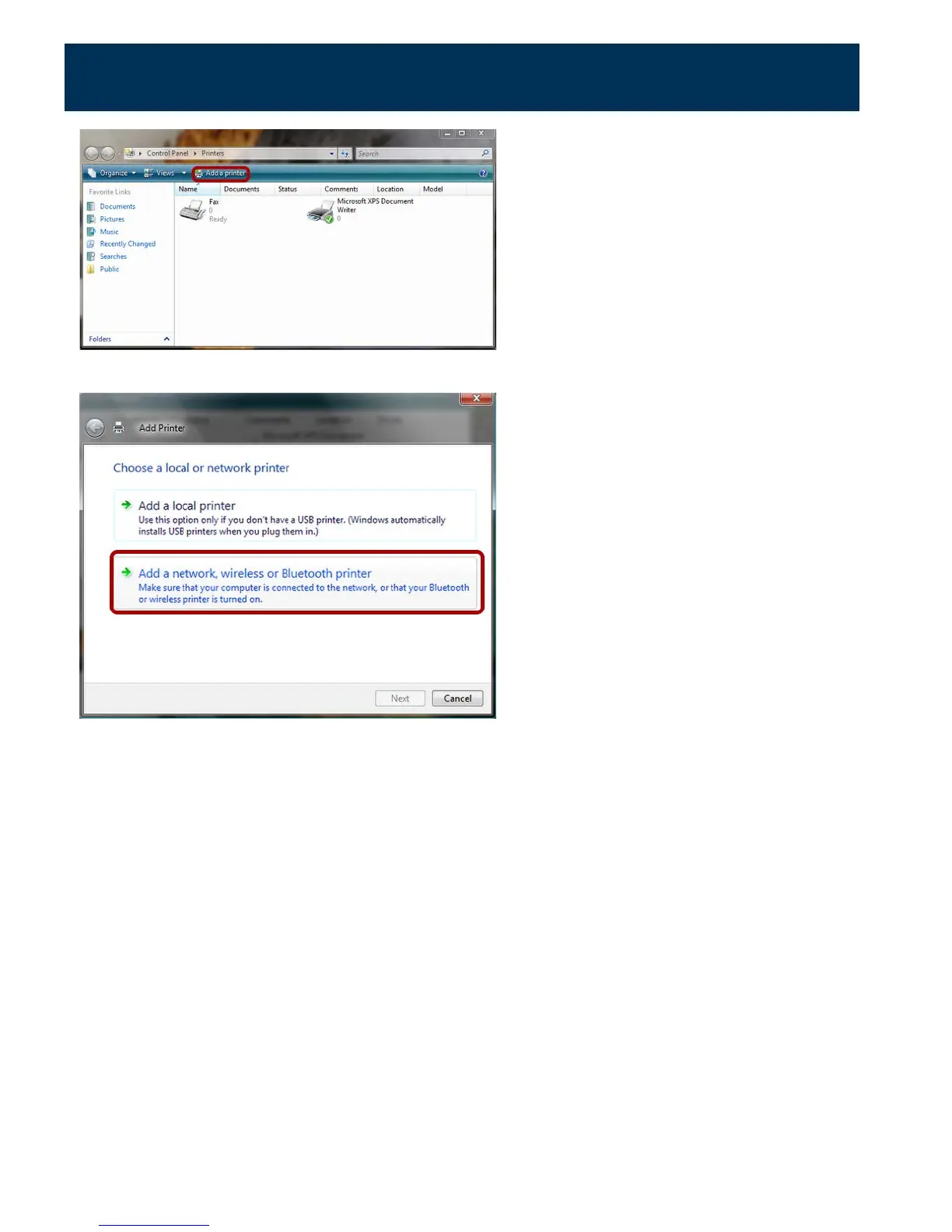 Choose "Add a network, wireless or Bluetooth printer." Click Next.
