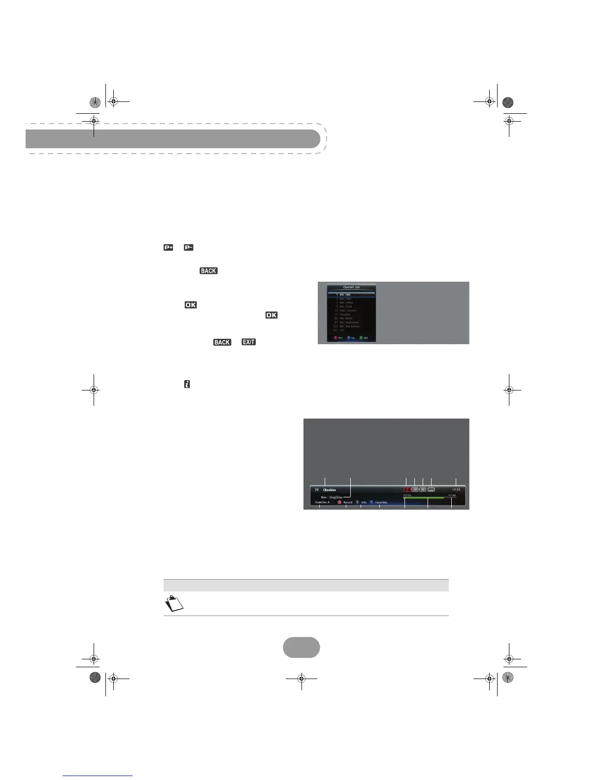 Each time you switch channels, the information banner appears onscreen. You can also display it by
