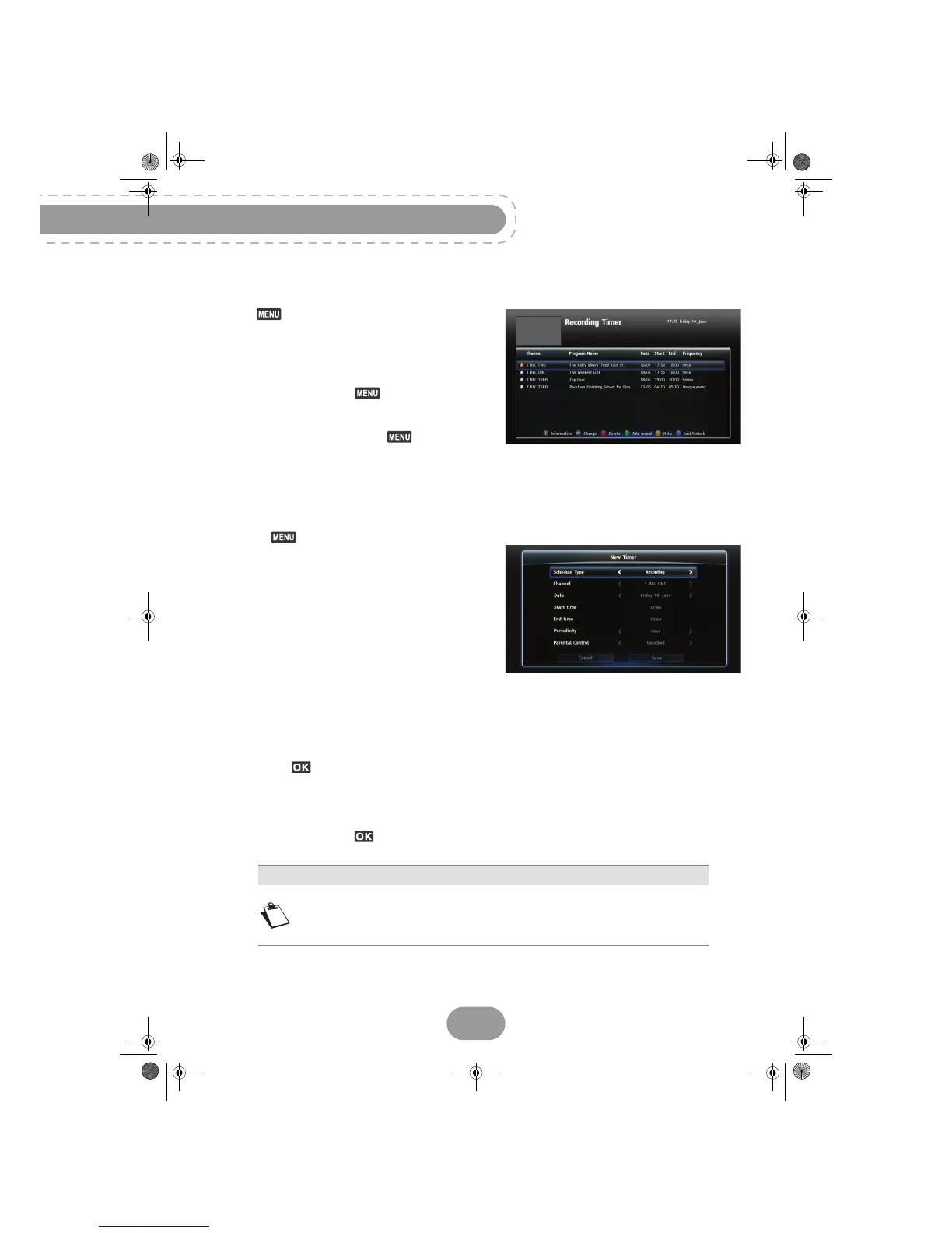 To modify an existing scheduled recording, select it in the list. Only timers entered manually can be