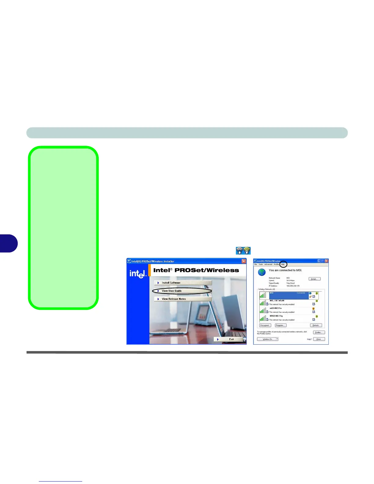 control panel (Start > Programs/All Programs > Intel PROSet Wireless),