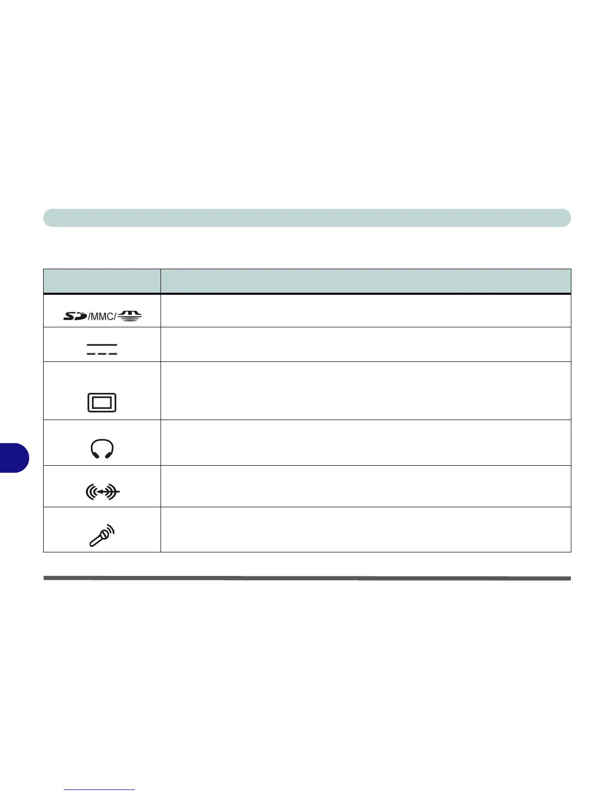DC-In Jack Plug the supplied AC/DC adapter into this jack to power your computer.
