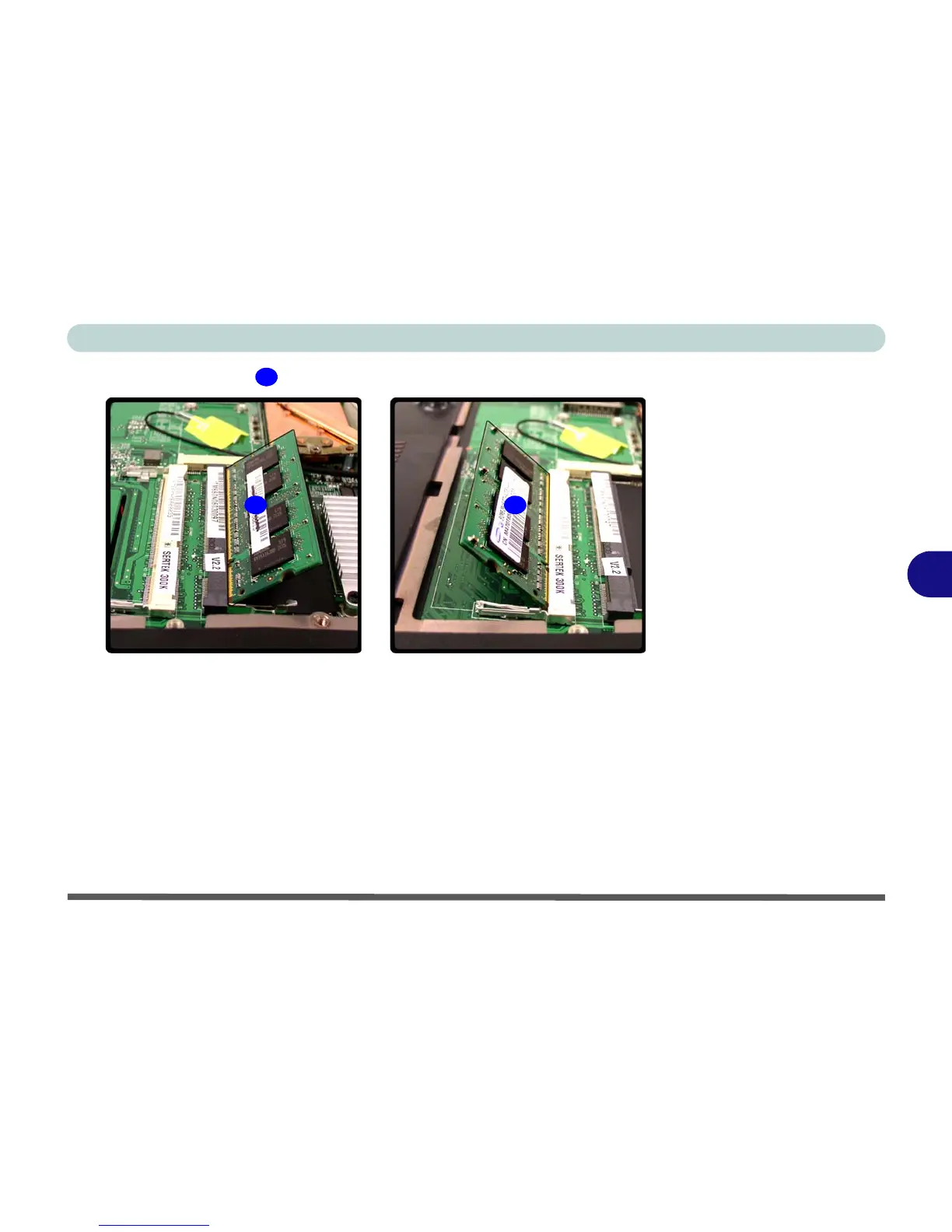 9. Press the module in and down towards the mainboard until the slot levers click into