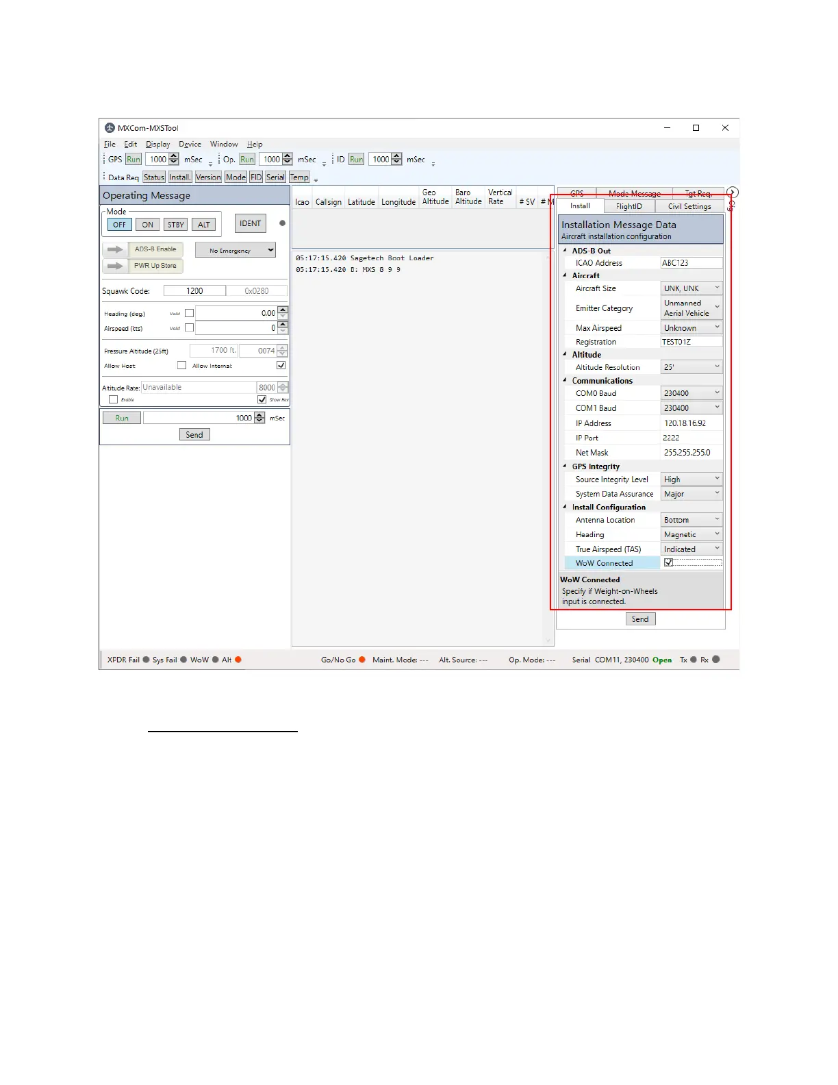 Note: The information in the bottom bar of the MXS GUI is only updated when an ACK is received in