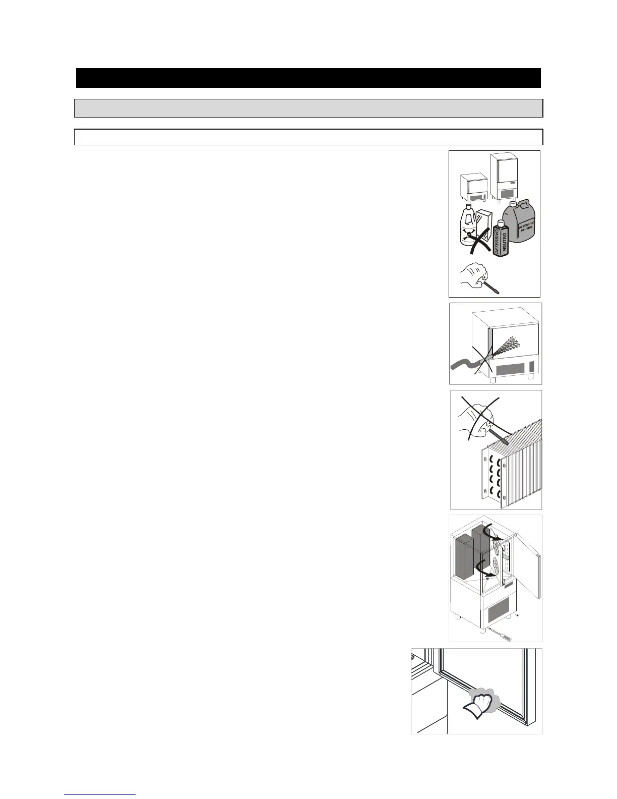 Do not rinse with sharp or abrasive tools, especially the evaporator.