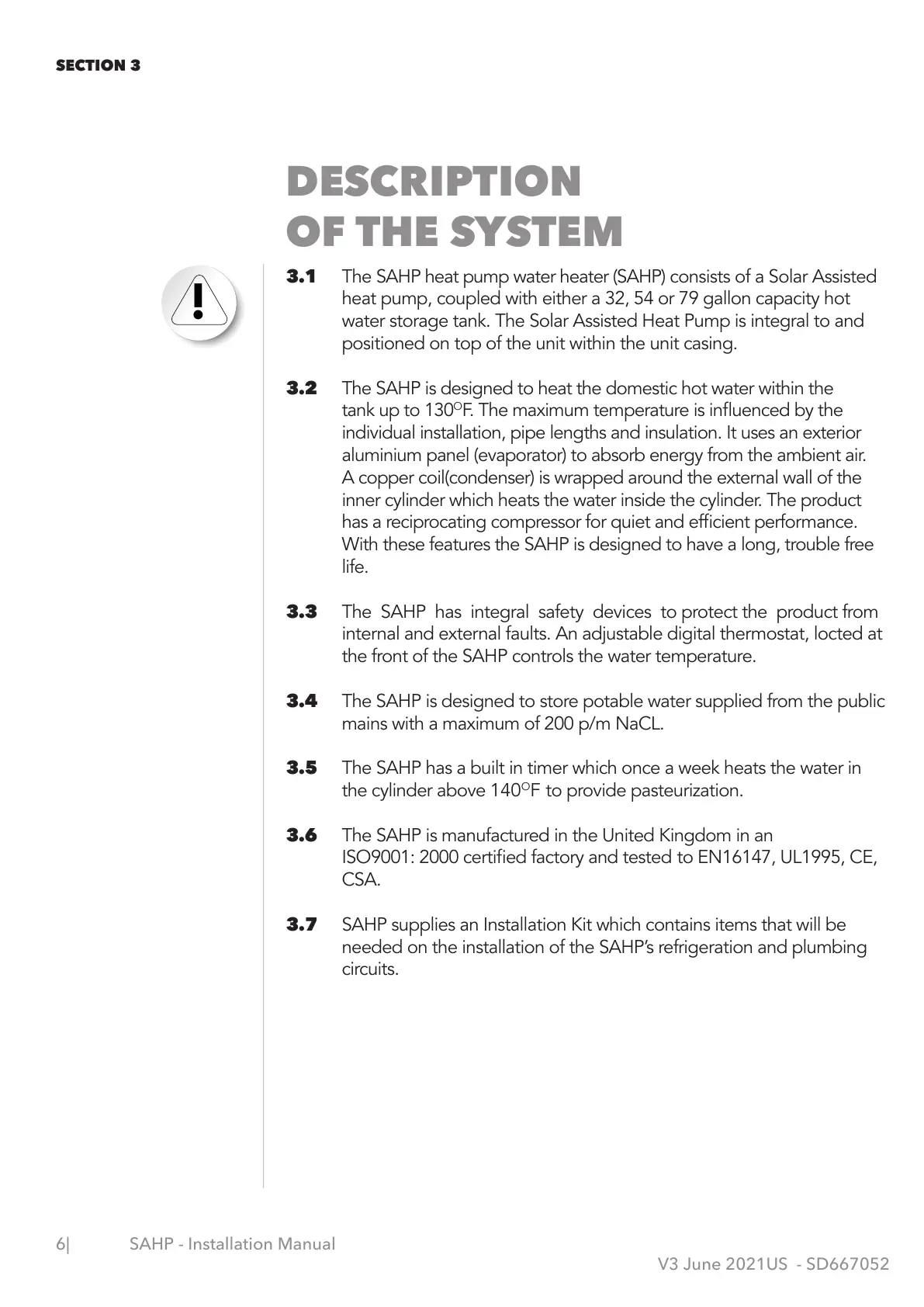 3.2 The SAHP is designed to heat the domestic hot water within the