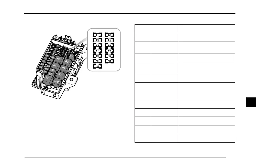 SAIC MOTOR MG3 2011 - Engine Compartment Fuse Box; Fuses Specifications
