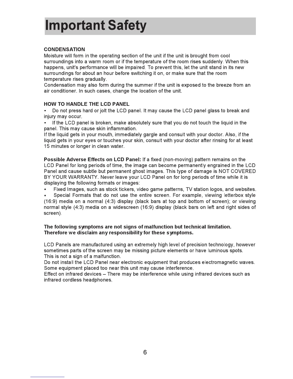SAIKYO SCOM3216 - LCD Panel Care and Condensation