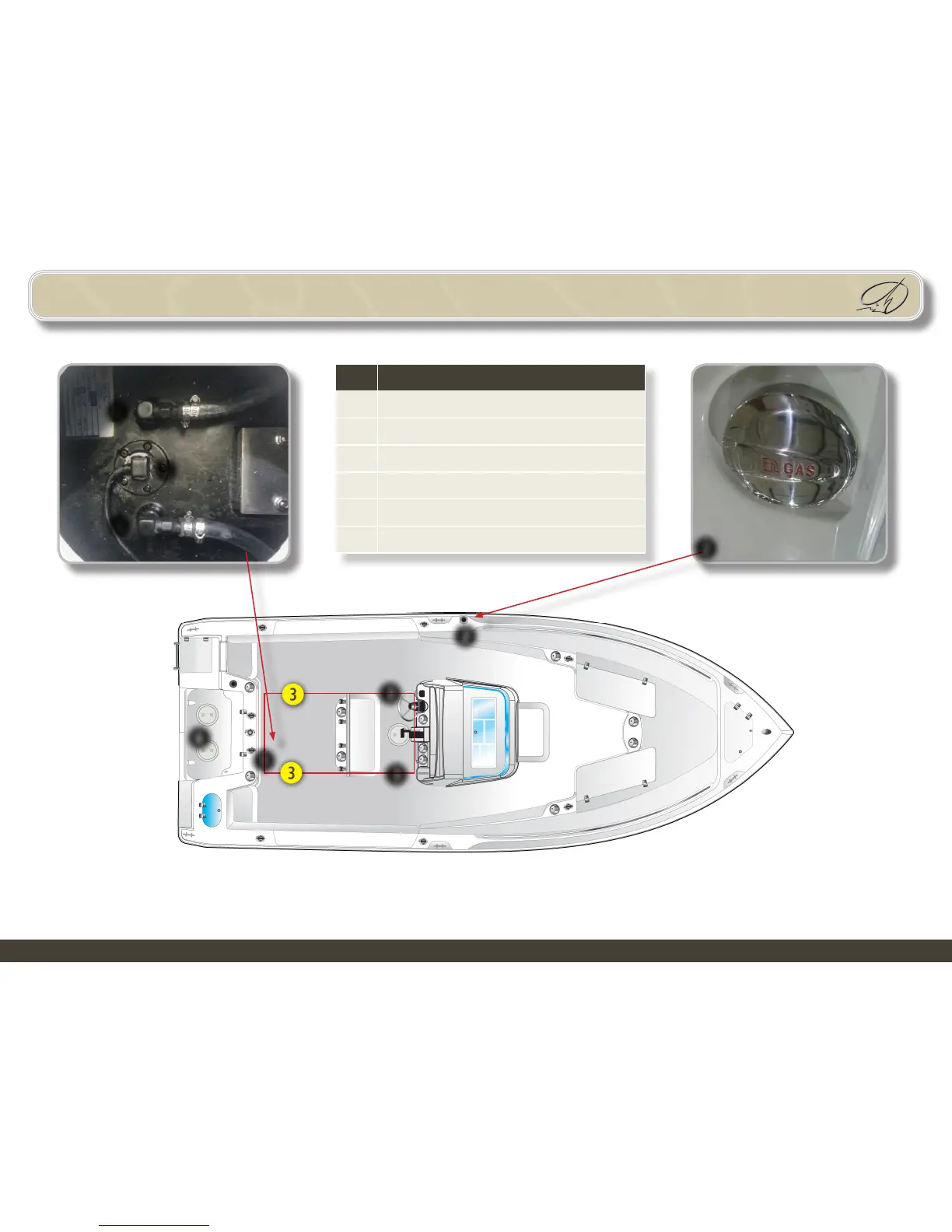 Sailfish 220 CC - Fuel System Layout; Fuel Filter and Pickup Locations; Fuel Fill and Sender Components; Primer Bulbs