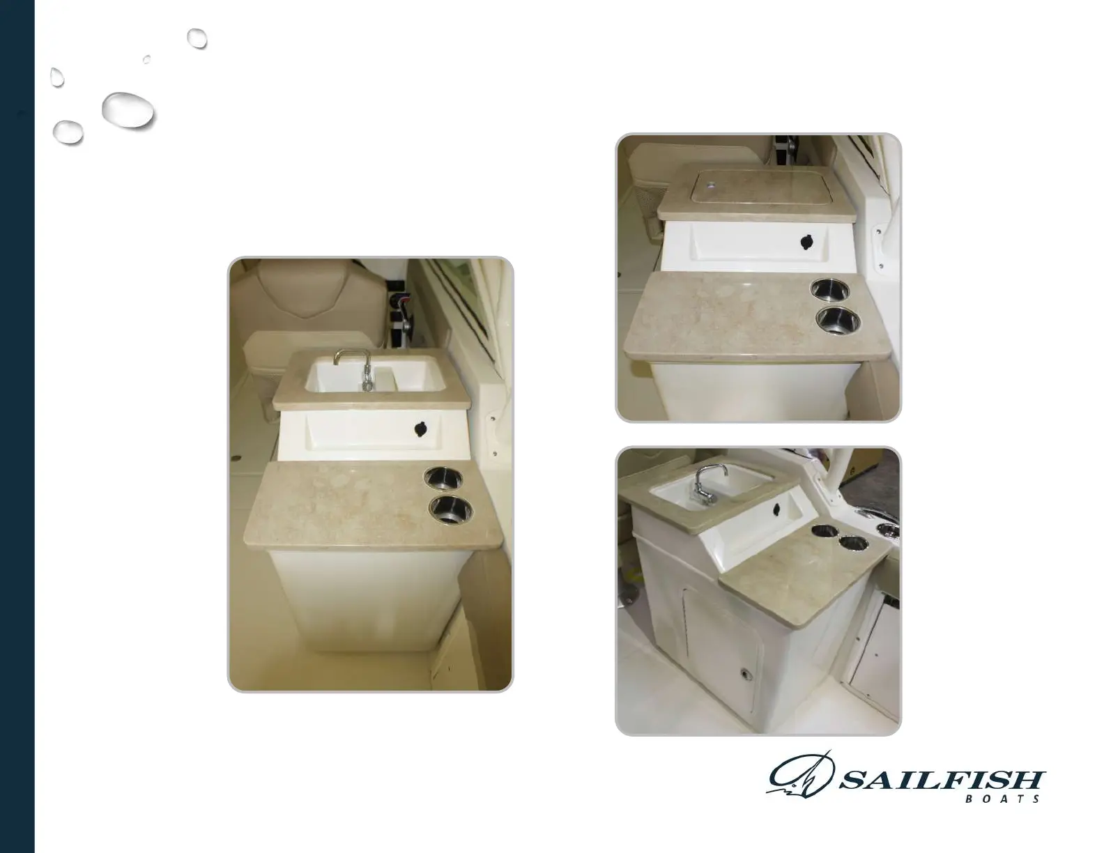 water sink, and storage in the side.