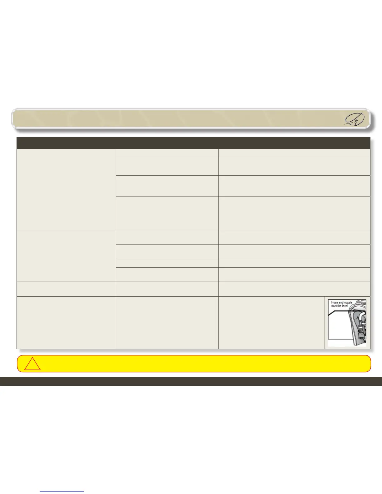 Clog at pump inlet Clear clog. DO NOT ush foreigh objects.