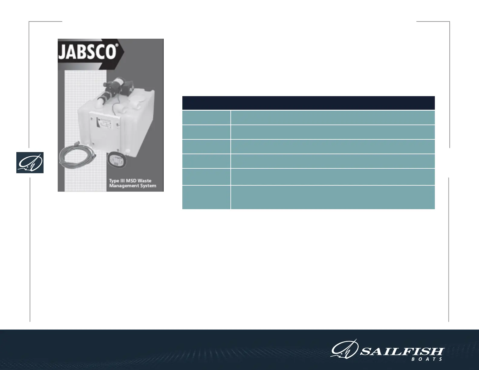 SAILFISH 272 CC | TYPE III MSD WASTE MANAGEMENT SYSTEM