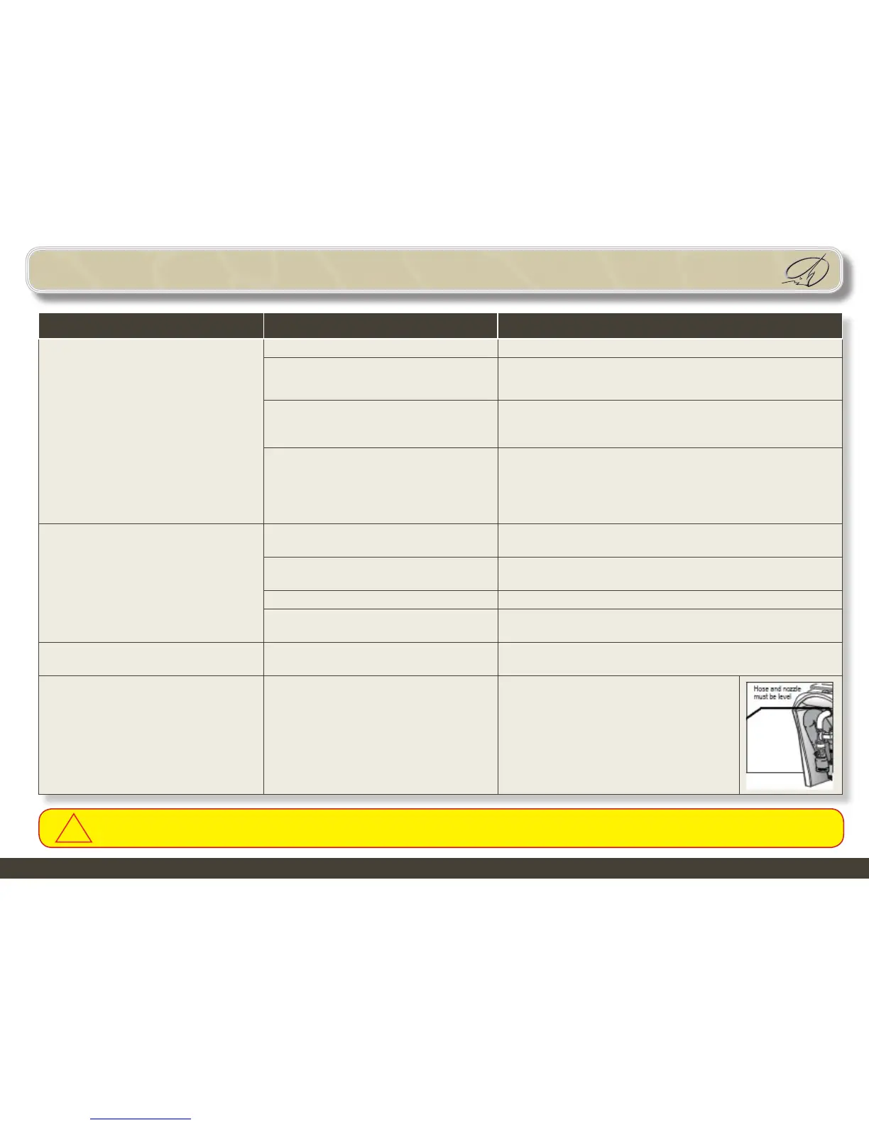 Clog at pump inlet Clear clog. DO NOT ush foreigh objects.