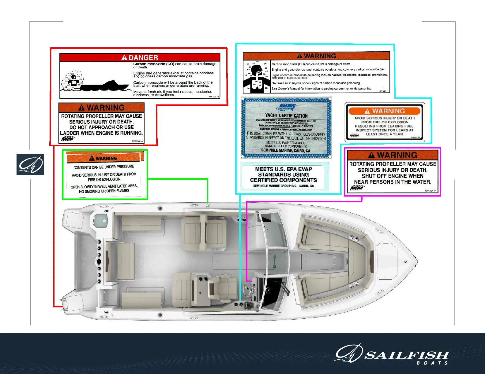 SAILFISH 276 DC | BOAT SAFETY & WARNING LABEL LOCATIONS