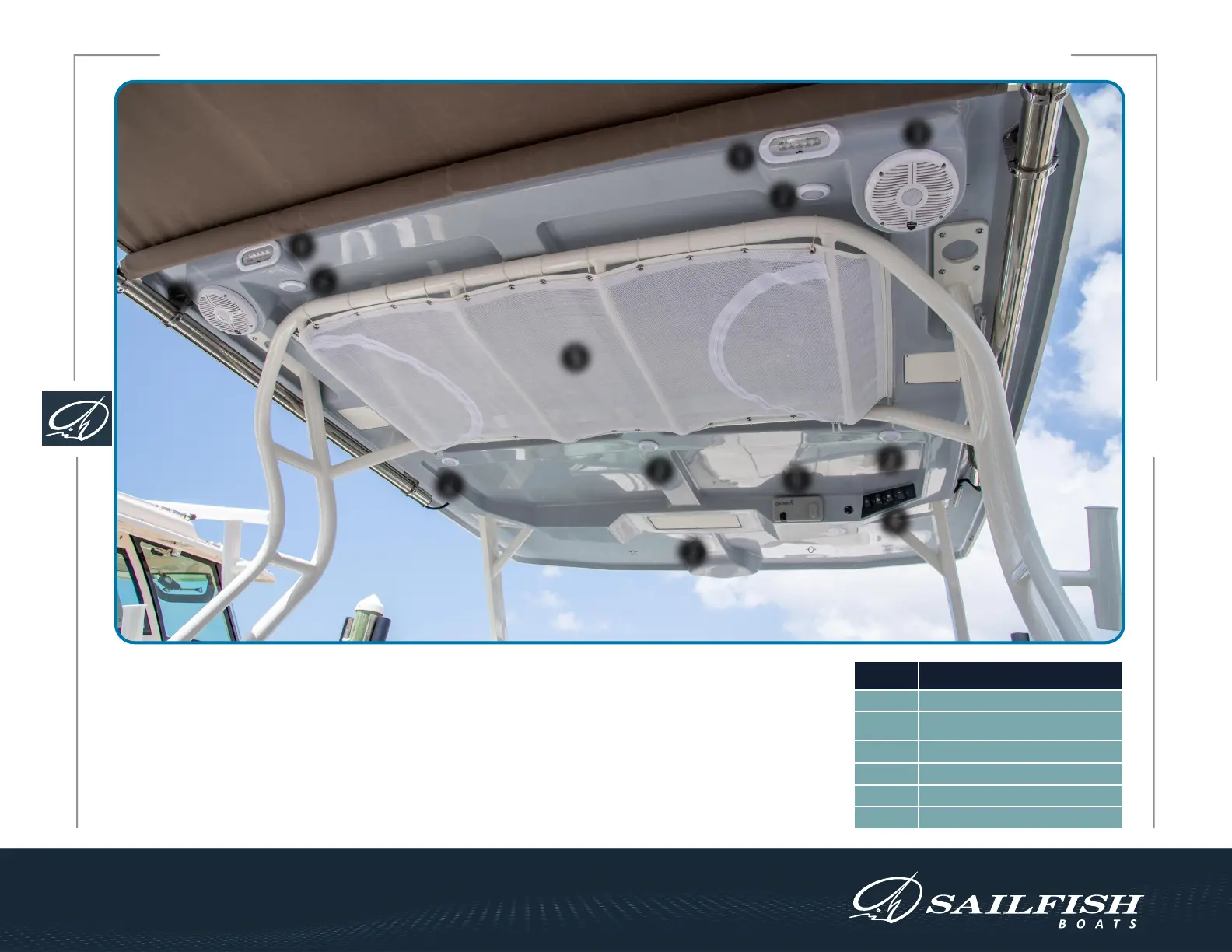 anchor light , two speakers and overhead PFD Storage. Shown with optional SureShade MTF™.