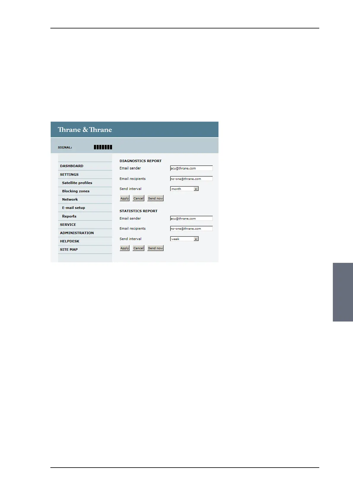 SAILOR 100 Satellite TV can send a statistics report at fixed intervals