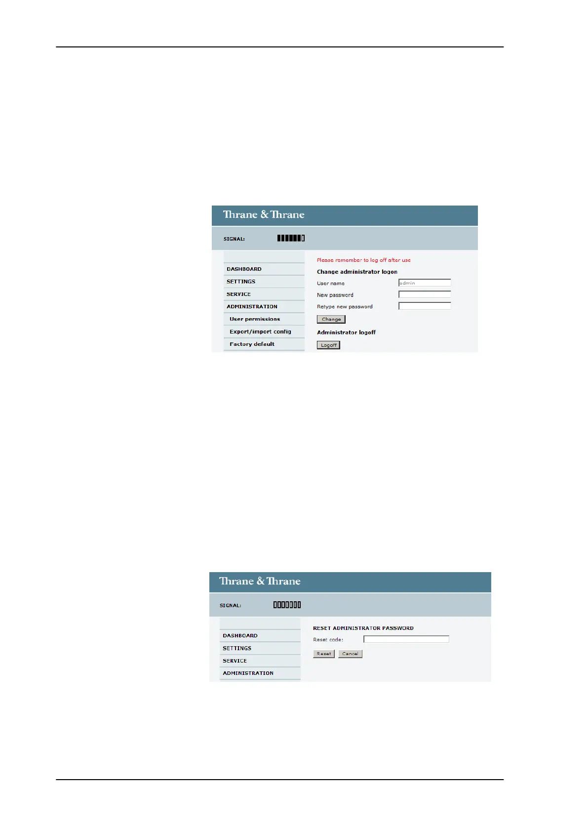 Figure 6-27: Web interface: ADMINISTRATION, Reset administrator password