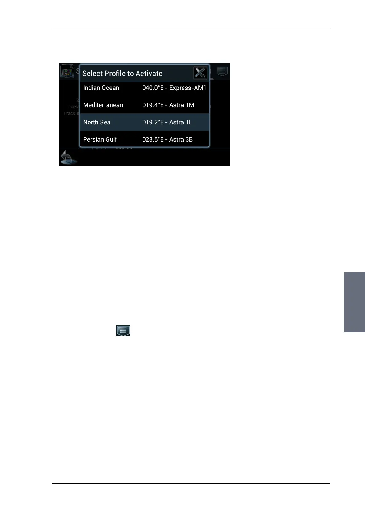 Figure 6-34: Control Panel — Selecting a satellite profile