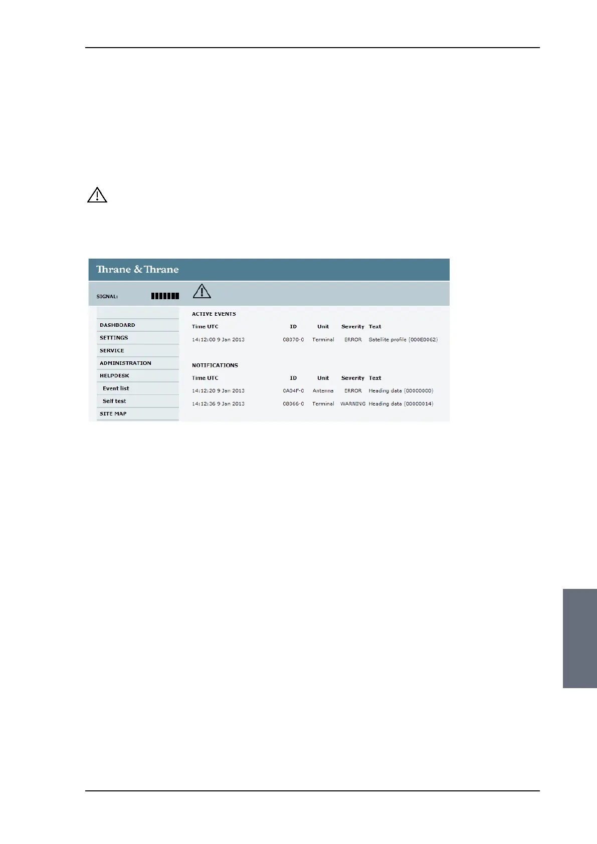 Figure 8-2: Web interface: HELPDESK, Event list