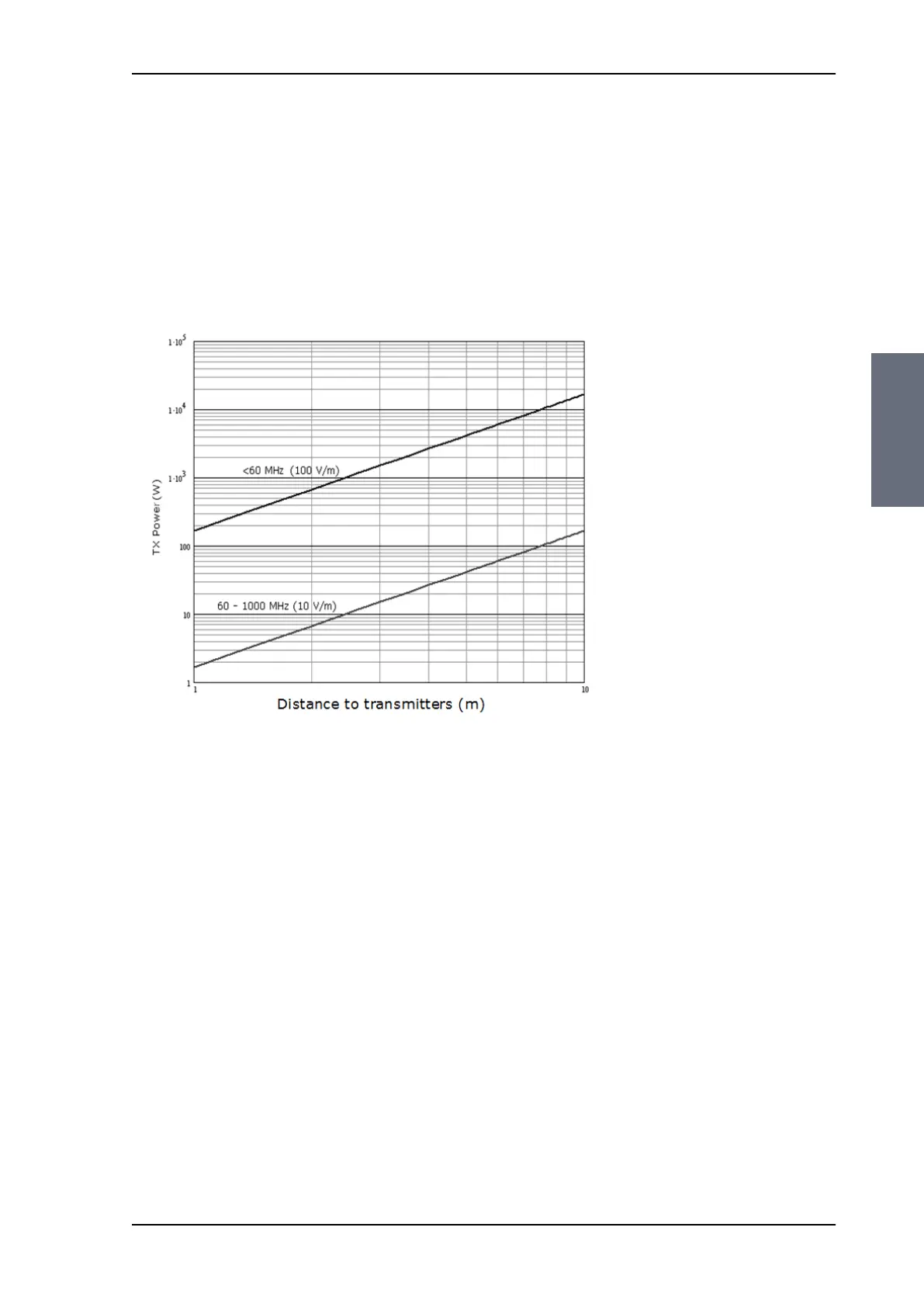 Figure 3-11: Recommended distance to transmitters (m) for frequencies below