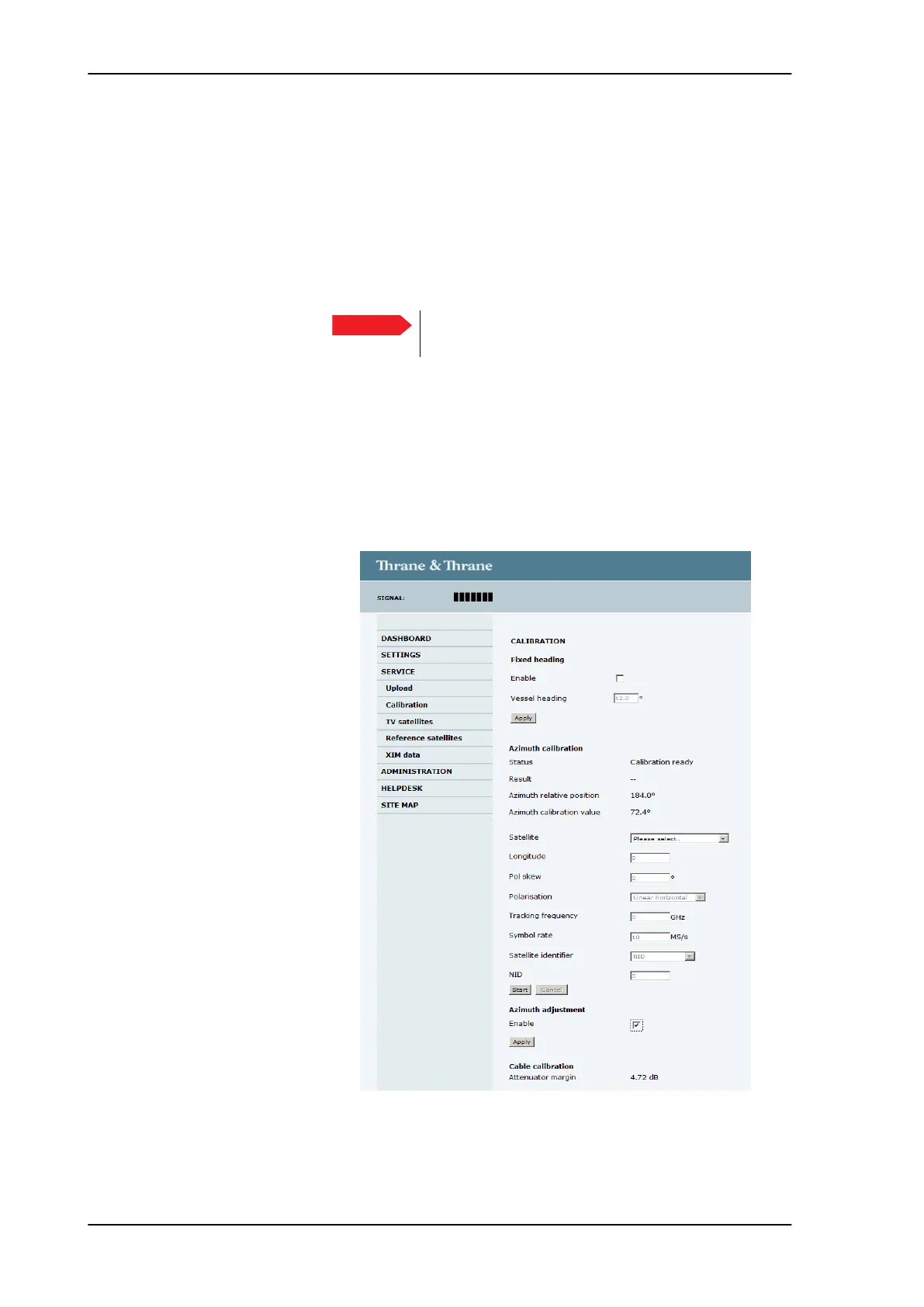 Figure 6-3: Web interface: SERVICE, Calibration
