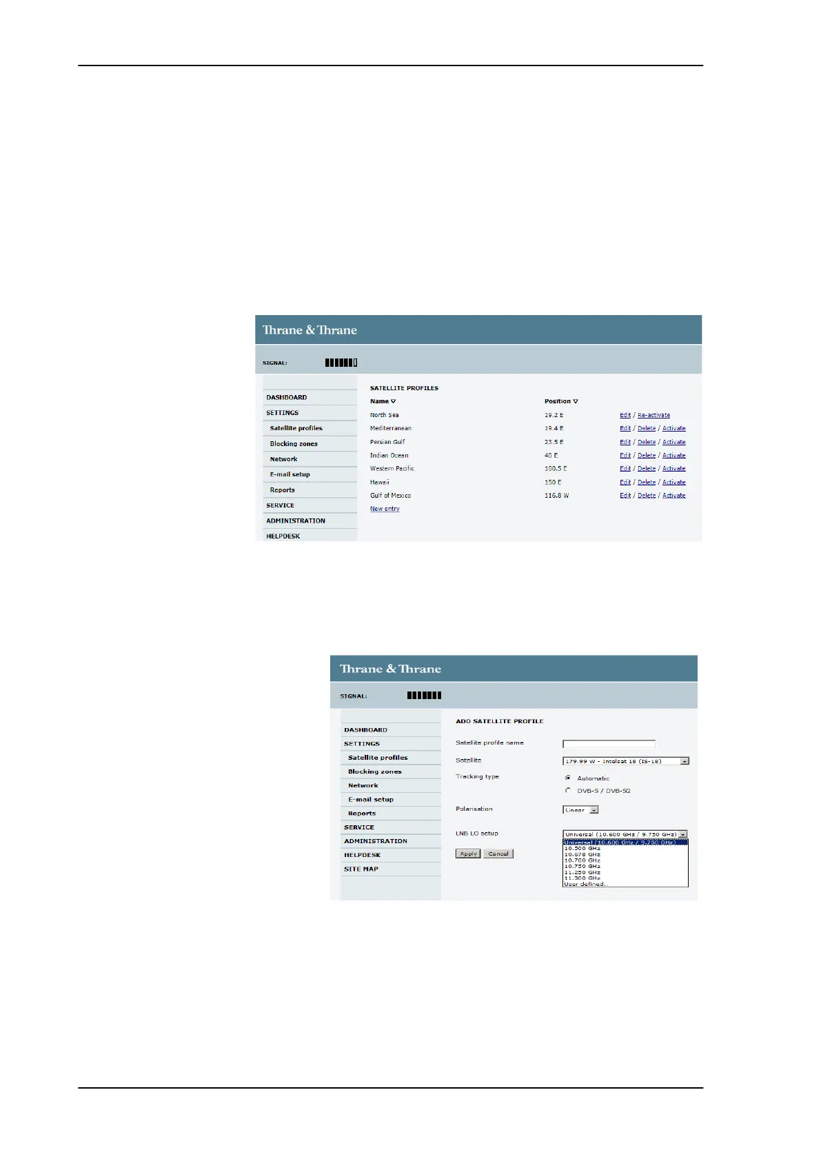 Figure 6-7: Web interface: SETTINGS - list of satellite profiles (example)