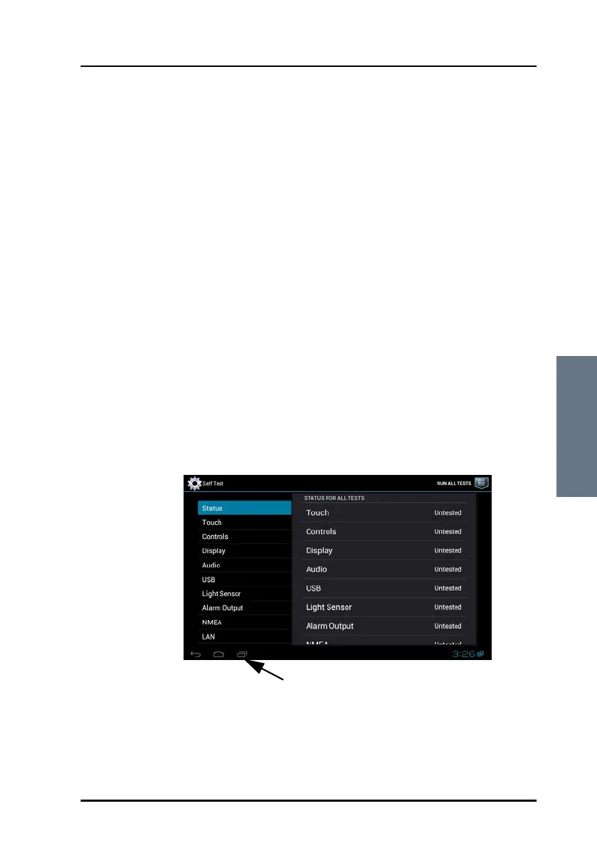 5. To leave the self test and go to a user application (if any are installed), tap