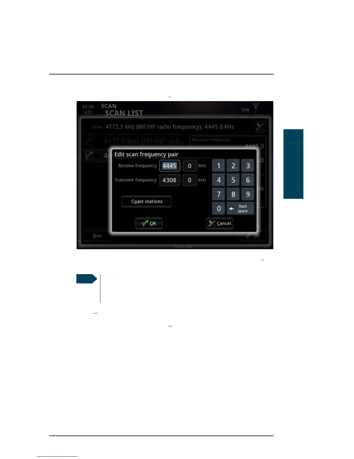 5. Type in the Receive and Transmit frequencies or select from the list of Co