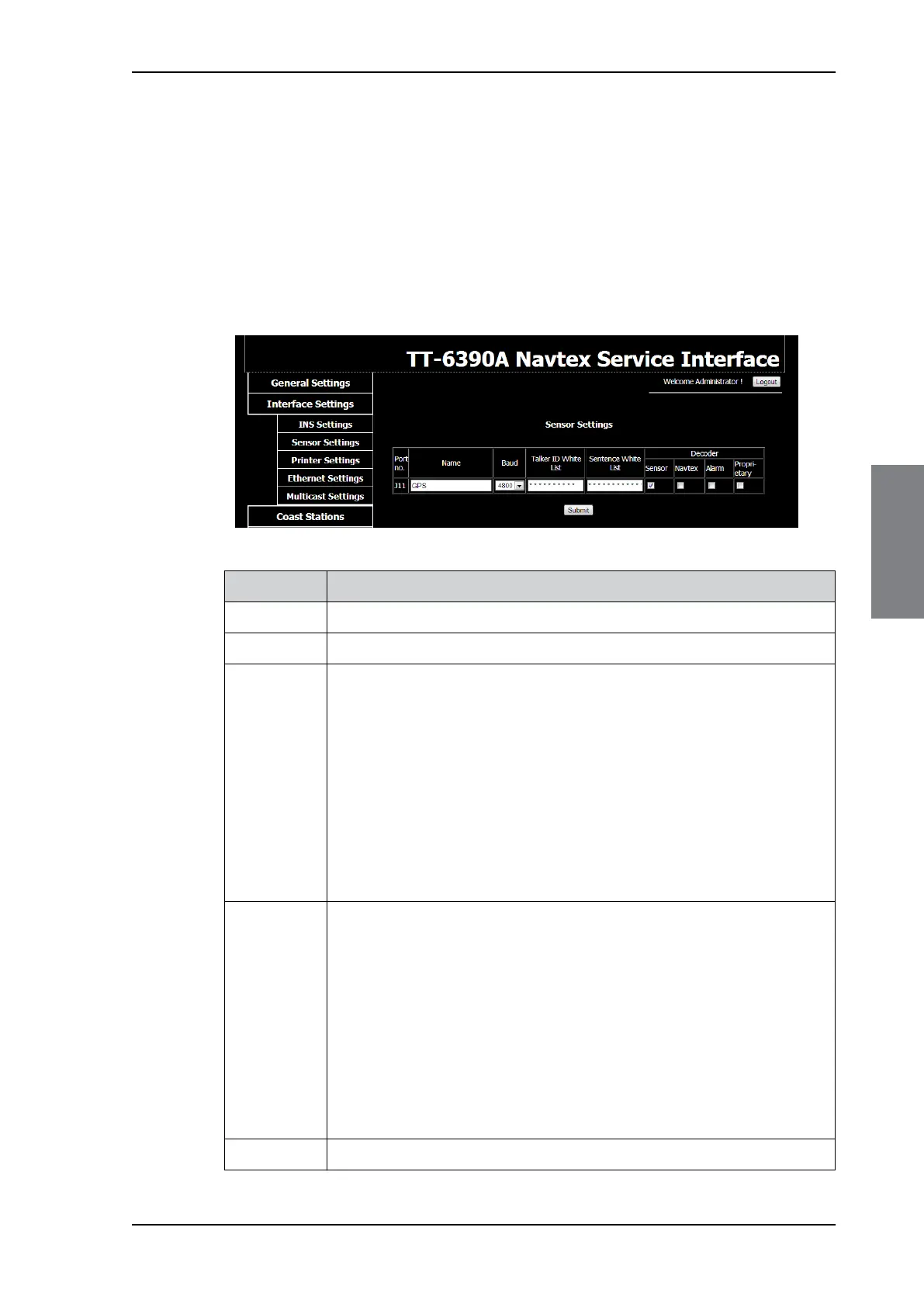 Navtex Receiver on this interface. Talker IDs that are not listed will be