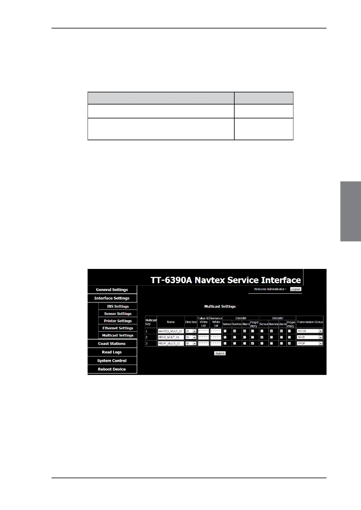 Figure 4-12: Service Interface: Interface Settings – Multicast Settings (default)