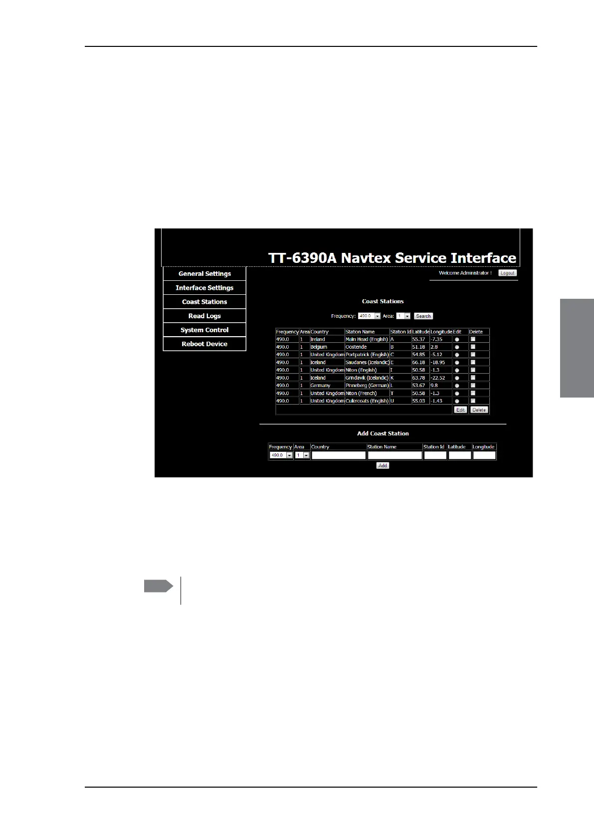 editing, adding or deleting coast stations. Adding a coast station is necessary if a new coast