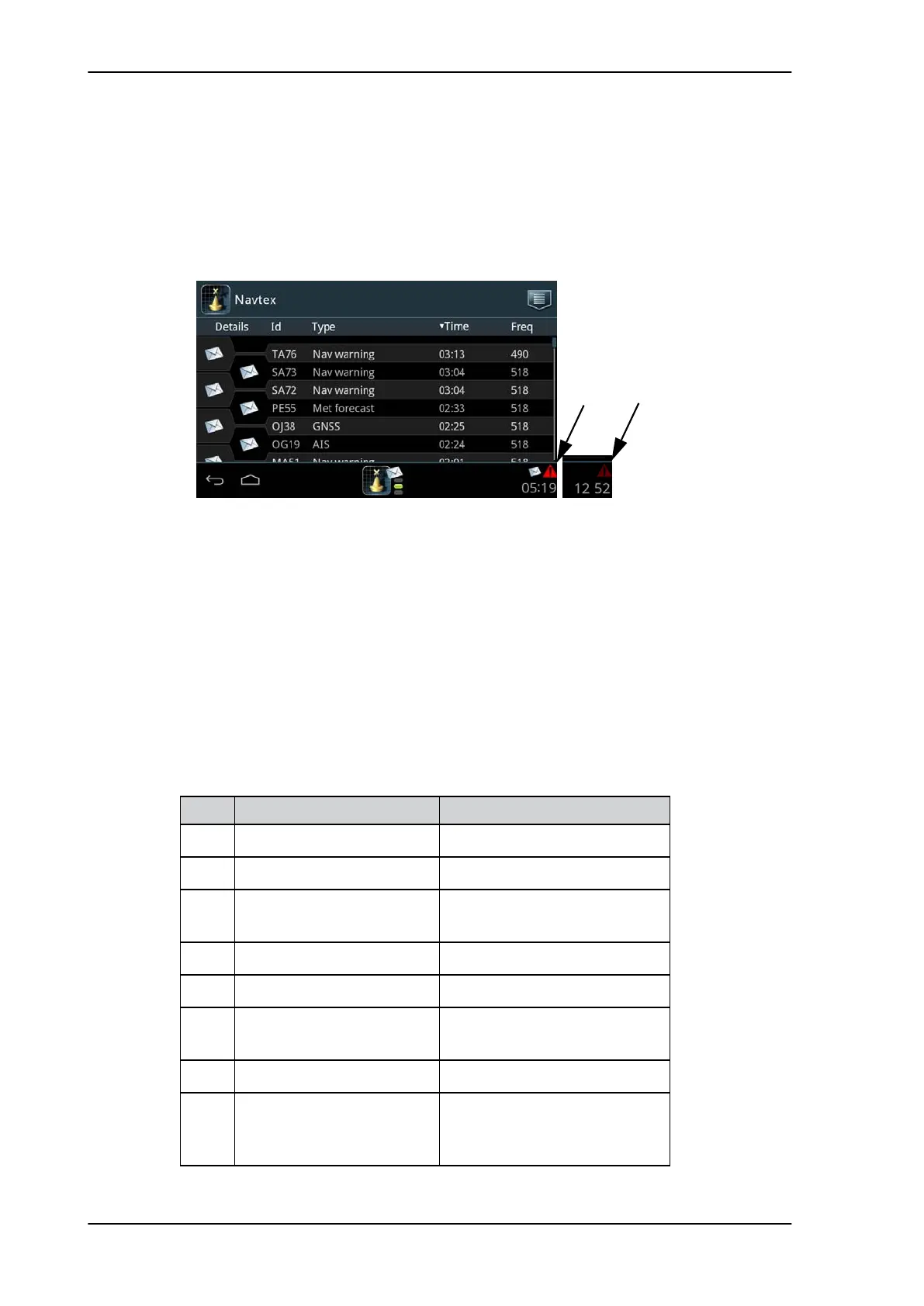 Table 5-1: Navtex alarms