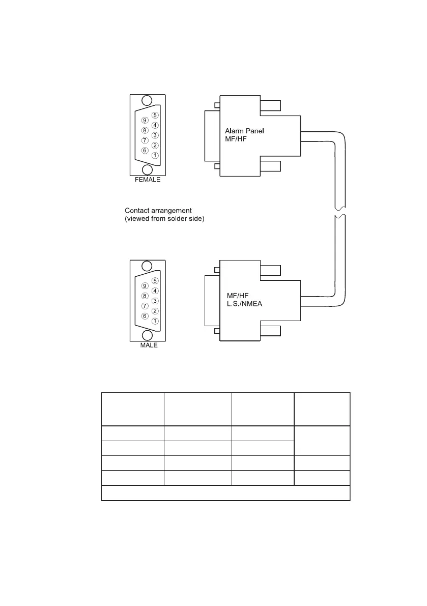 Note: The cable shield must be connected to chassis on the MF/HF equipment and