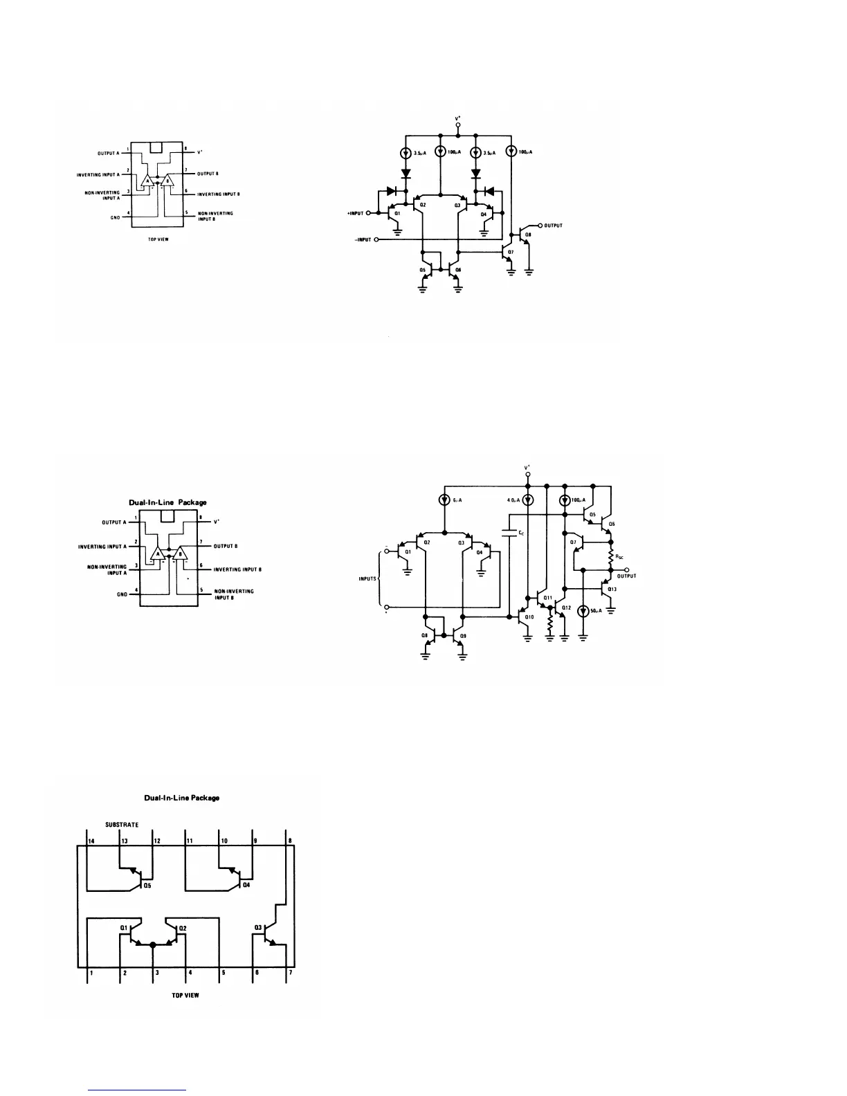 CONNECTION DIAGRAM (TOP VIEW) SCHEMATIC DIAGRAM (EACH AMPLIFIER)