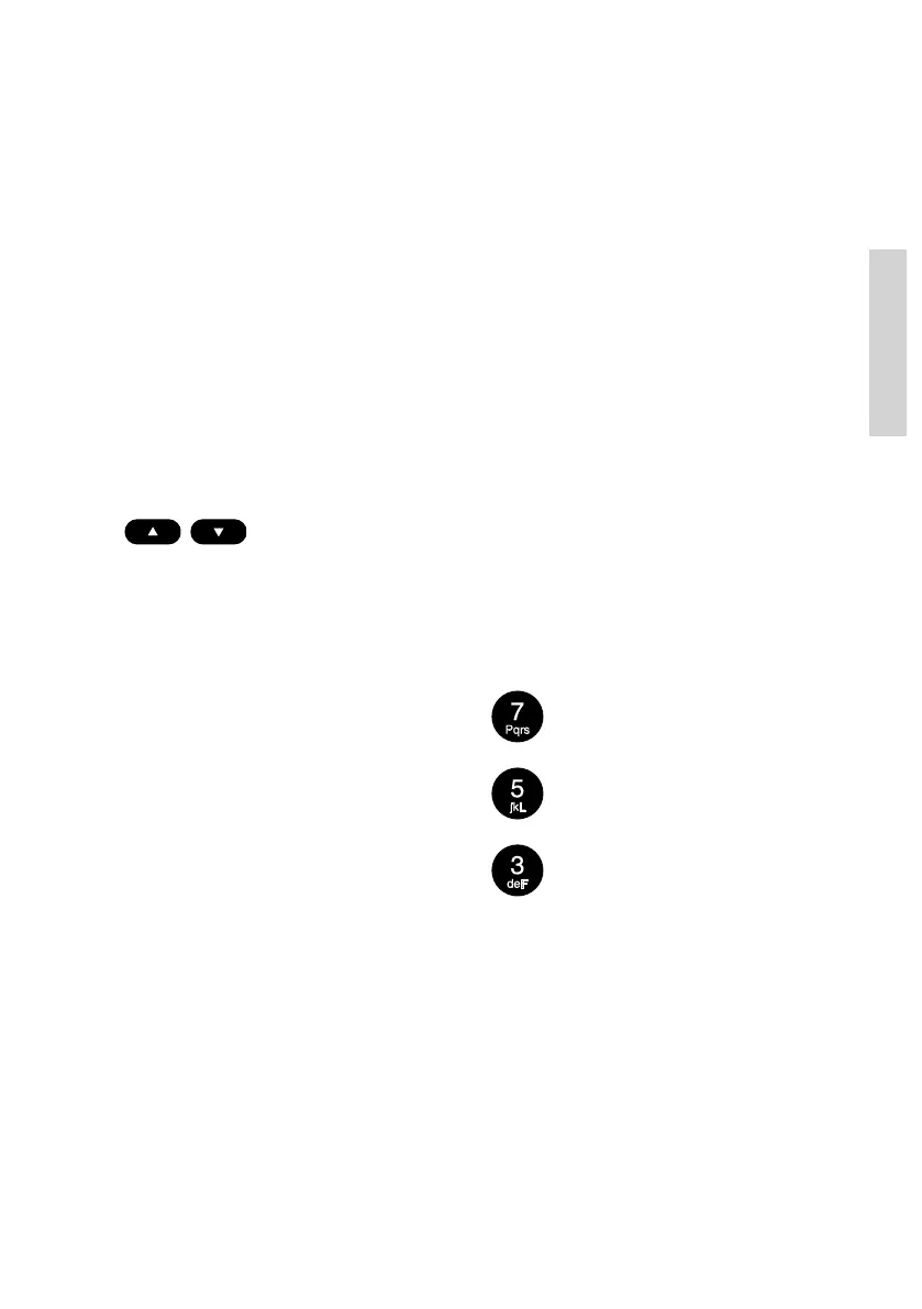 Continued activation of the keys ´3´, ´5´ or ´7´ will cause the letters F-, L- or P- respectively