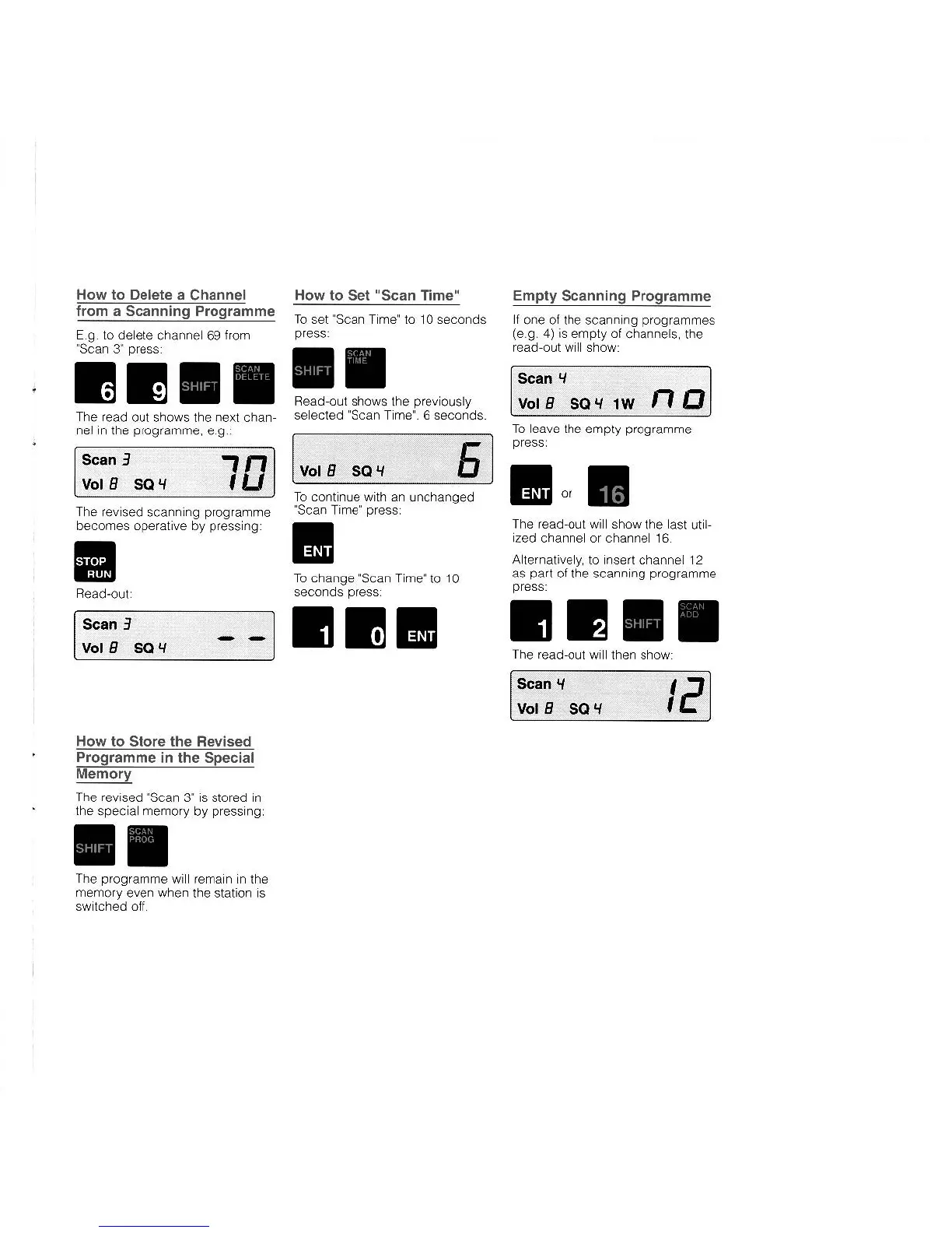 Sailor VHF RT2047 - How to Delete a Channel from a Scanning Programme; How to Set Scan Time; Empty Scanning Programme