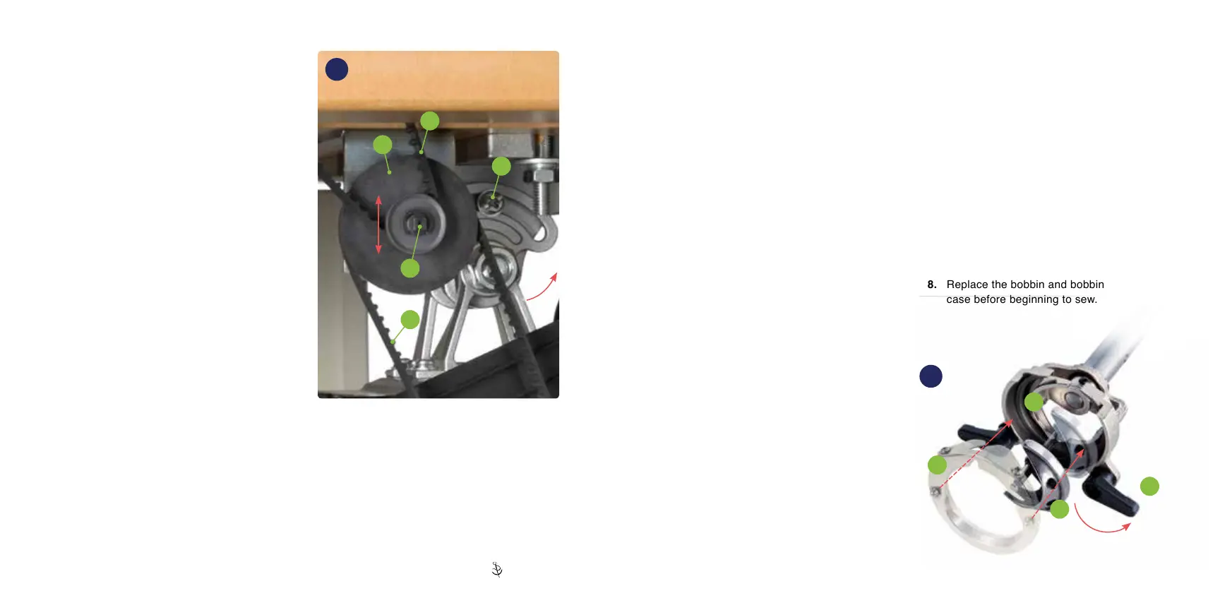 8� Replace the bobbin and bobbin