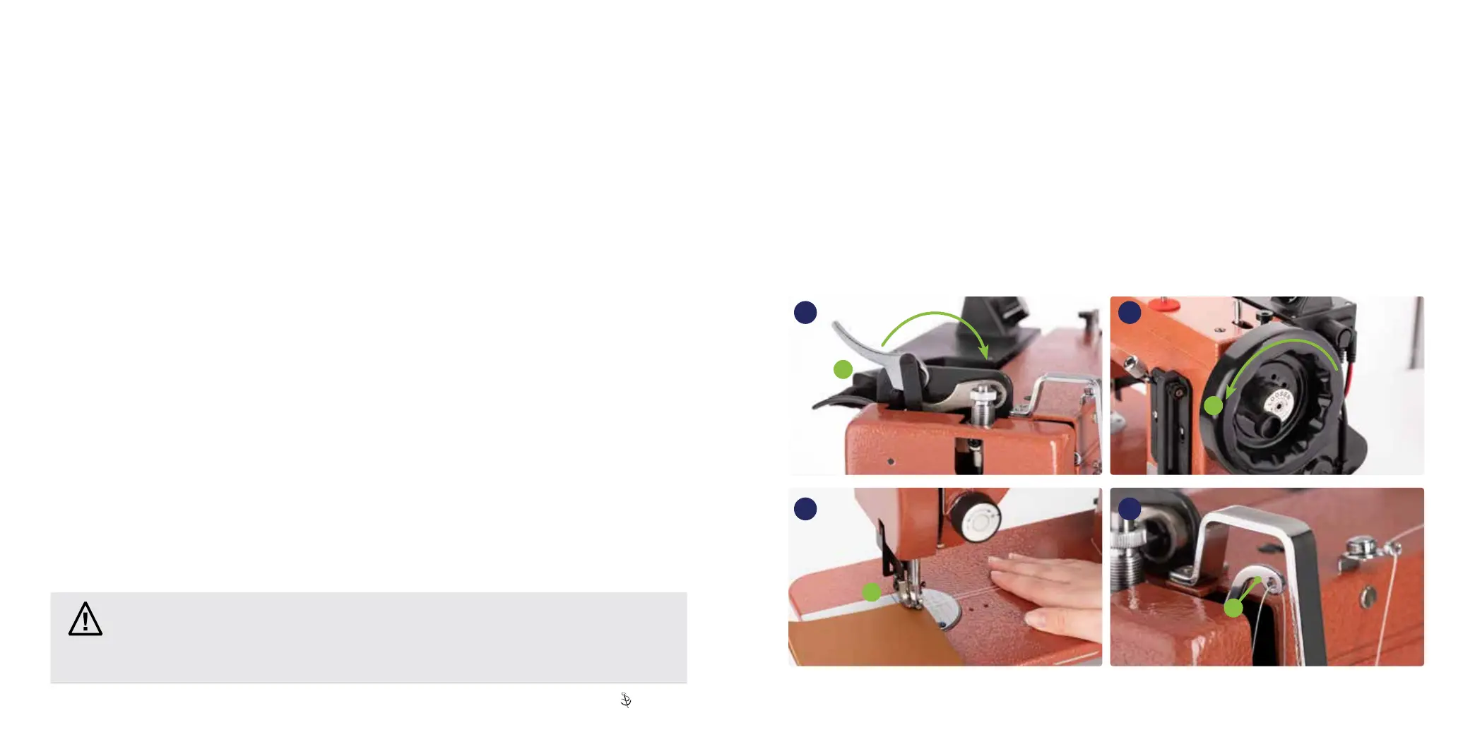 • Turn off the motor when servicing, changing needle or