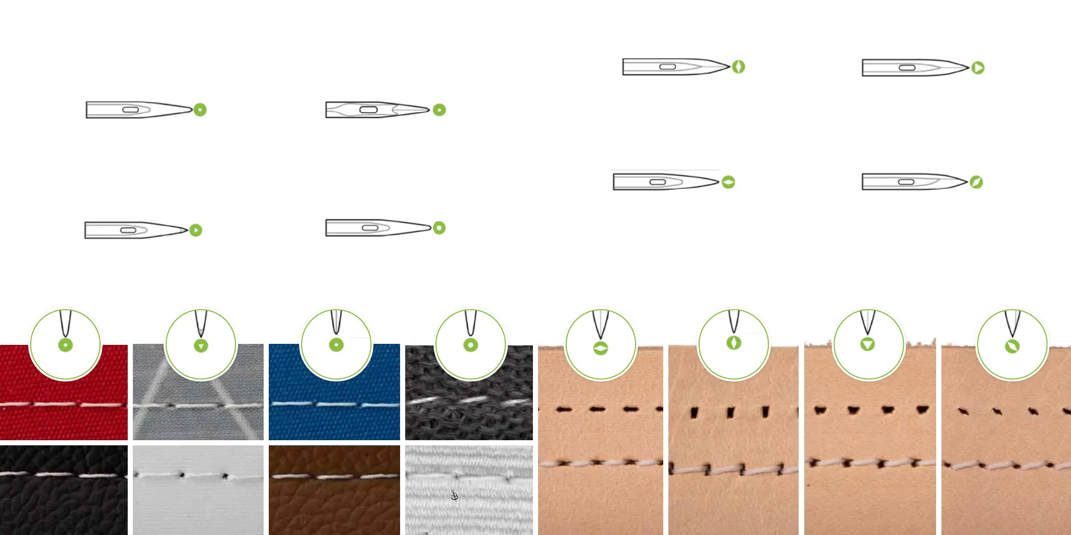 light to medium-hard leather� These needles produce