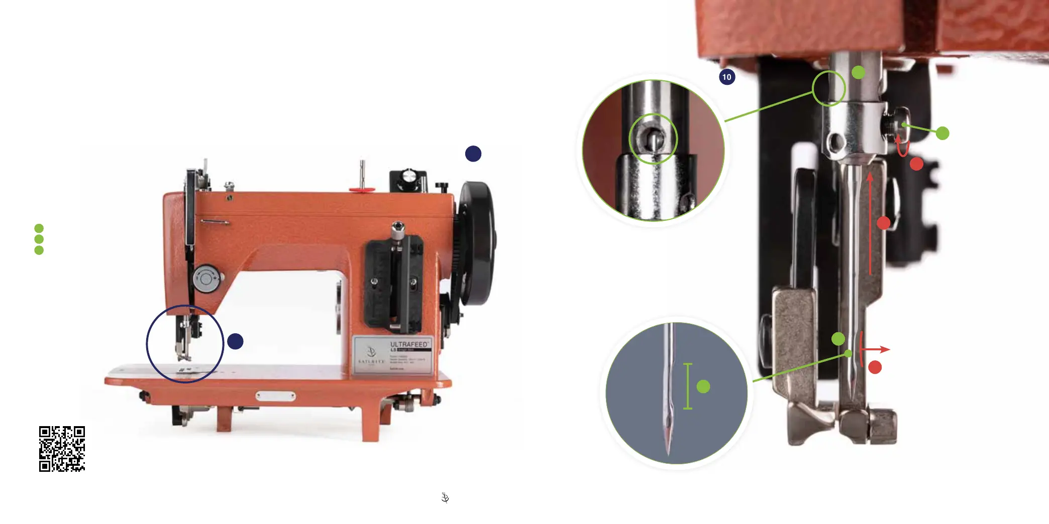 2� Rotate the needle so the scarf (A) faces the right as you face the front of the machine�
