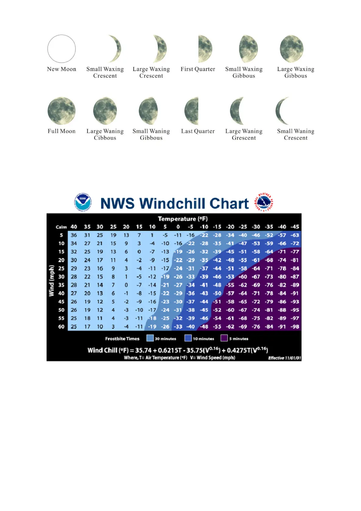 Weather Service Wind Chill Table below:
