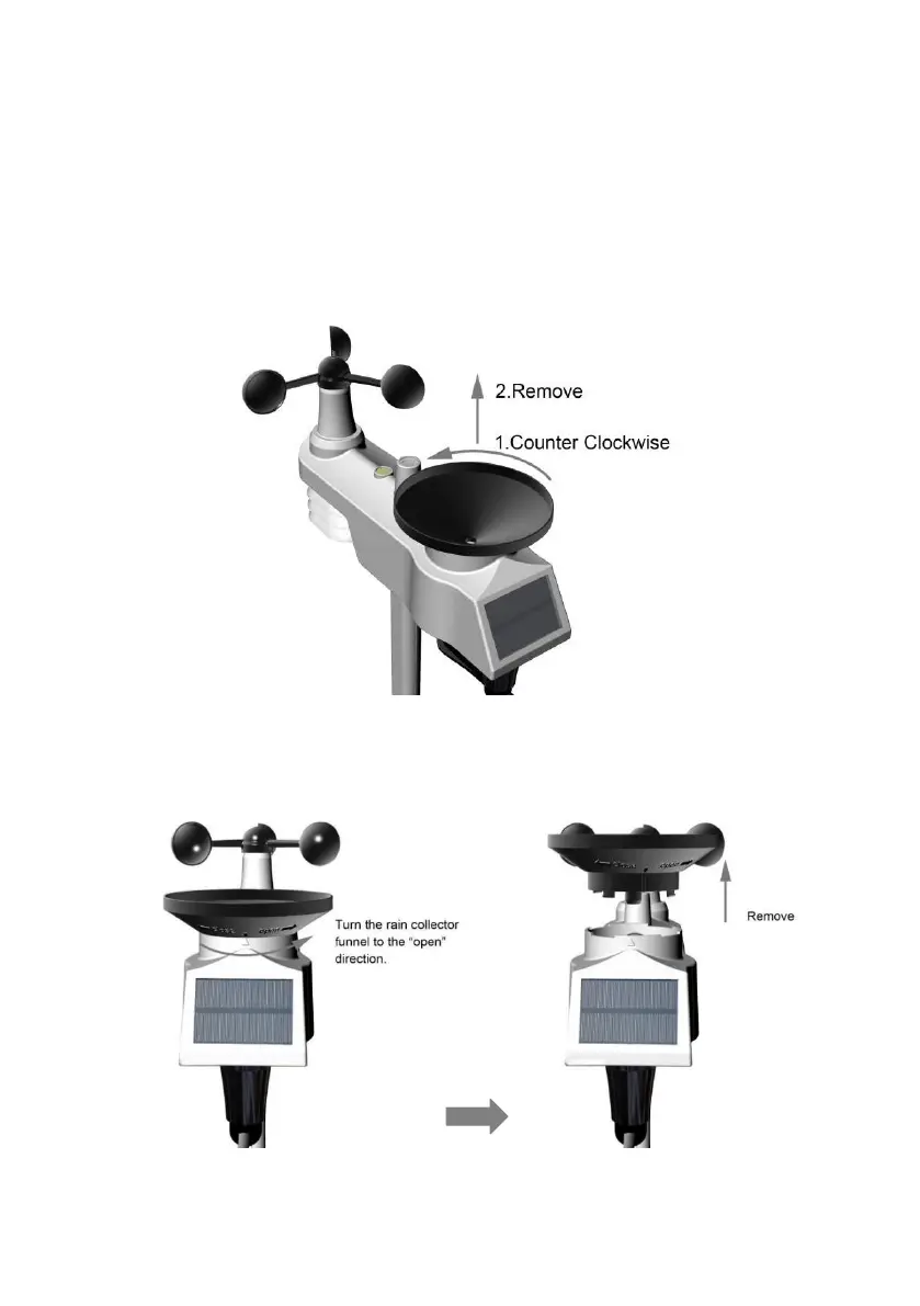 Unscrew the rain collector funnel by turning it 30°counter