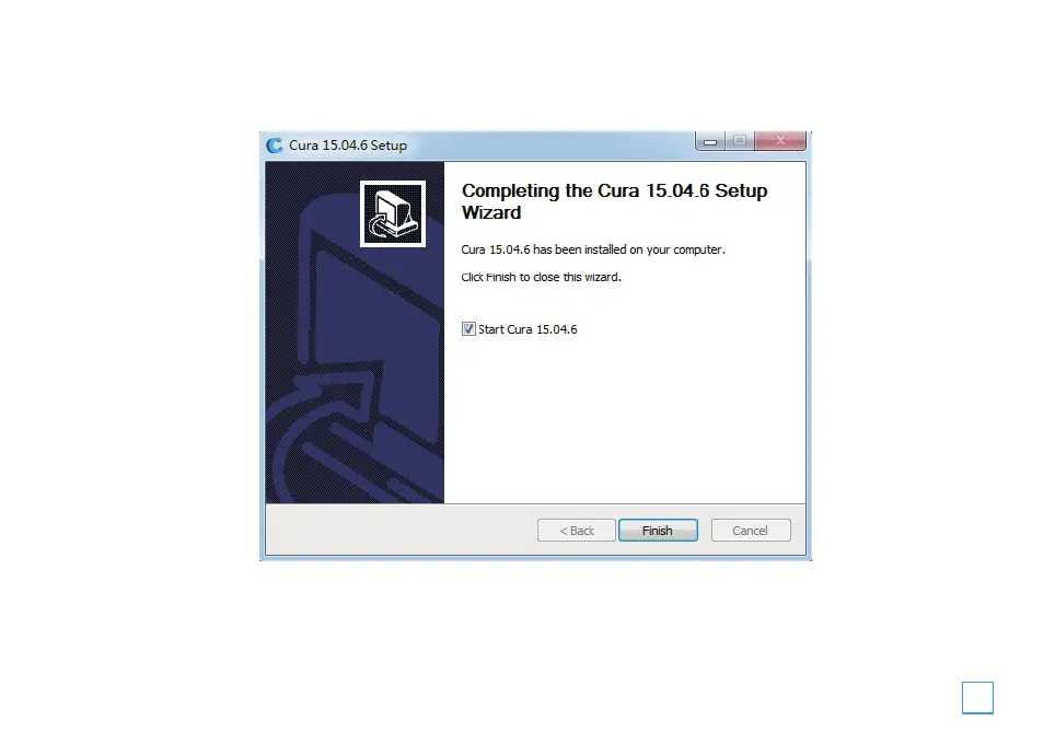 7. Ensure that the box next to the start Cura 15.04.6 option is checked, then click Finish to complete the installation and